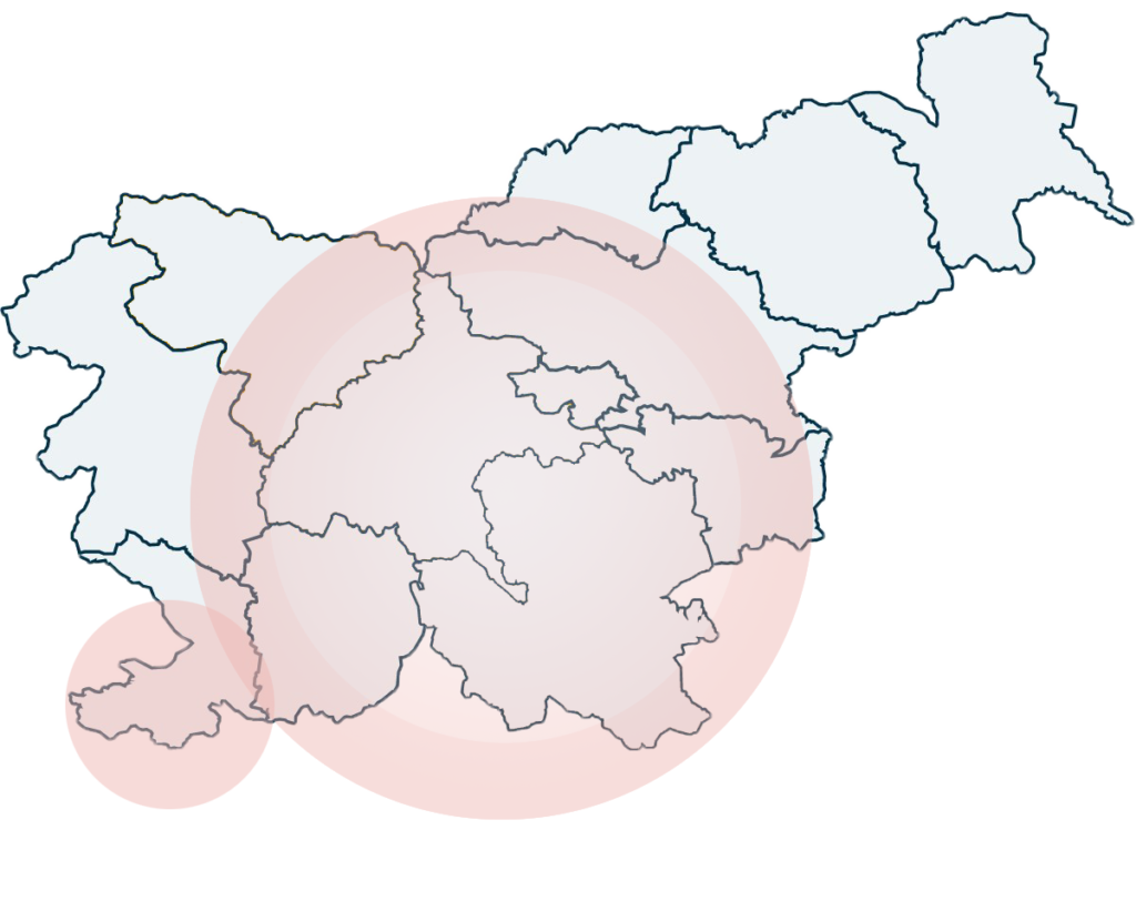 Poslujemo v osrednjeslovenski regiji, od Posavja do Primorske, na željo stranke in po predhodnem dogovoru pa izvajamo dela tudi po ostalih delih Slovenije, ter na Hrvaškem.
